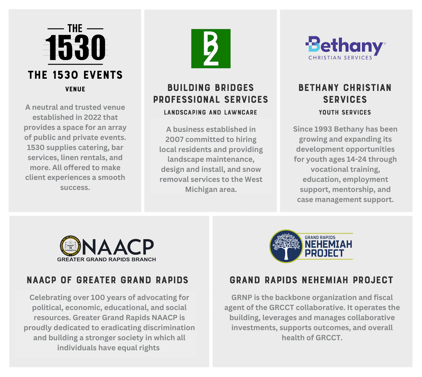The Grand Rapids Center for Community Transformation (GRCCT) was established in 2015. Located in the Madison Square neighborhood, GRCCT started as a partnership between two for-profits and three nonprofits. All with one single-minded mission — to create opportunities for transformation.